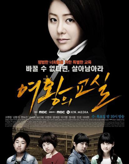 여왕의 교실 (2013) 新学期开学,六年3班迎来了一位新班主任,她就是传说中的“魔女”老师马如珍(高贤贞 饰)。开学第一节课老师就宣布每周进行考试,第一名的有奖励,倒数第一名的就要做班长,做班长意味着得包揽所有脏活累活。夏娜(金香奇 饰)因为铅笔被弄断而交了白卷,她和班上的捣蛋鬼吴东九成了倒数第一名,当天就被罚去打扫厕所。马老师的教育方式与其他老师全然不同,她以成绩高低来差别对待学生,引起学生强烈的不满。但凡敢与她作对,不论成绩好坏,都会被整得很惨。事情很快被家长们知道,大批家长来到学校讨说法,结果妈妈们完全被老师征服。马老师像女王一样支配着班级,给学生灌输弱肉强食、社会不公等观念,看似残酷无情,然而学生们却在悄悄发生改变……本剧改编自2005年播出的同名日剧。